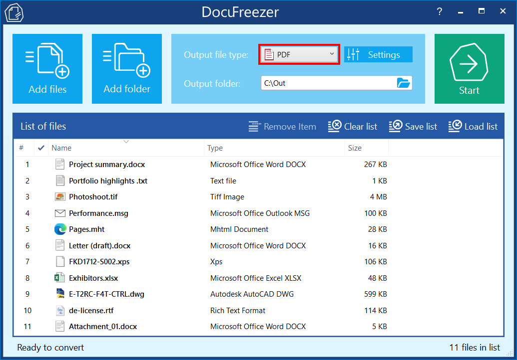 DocuFreezer allows you to preserve your documents by turning them to the PDF format, ensuring that they remain accessible and readable for years to come. The program is very easy to use and has some additional features for effective file conversion as well, such as watermarking or merging/splitting documents. Follow these steps: