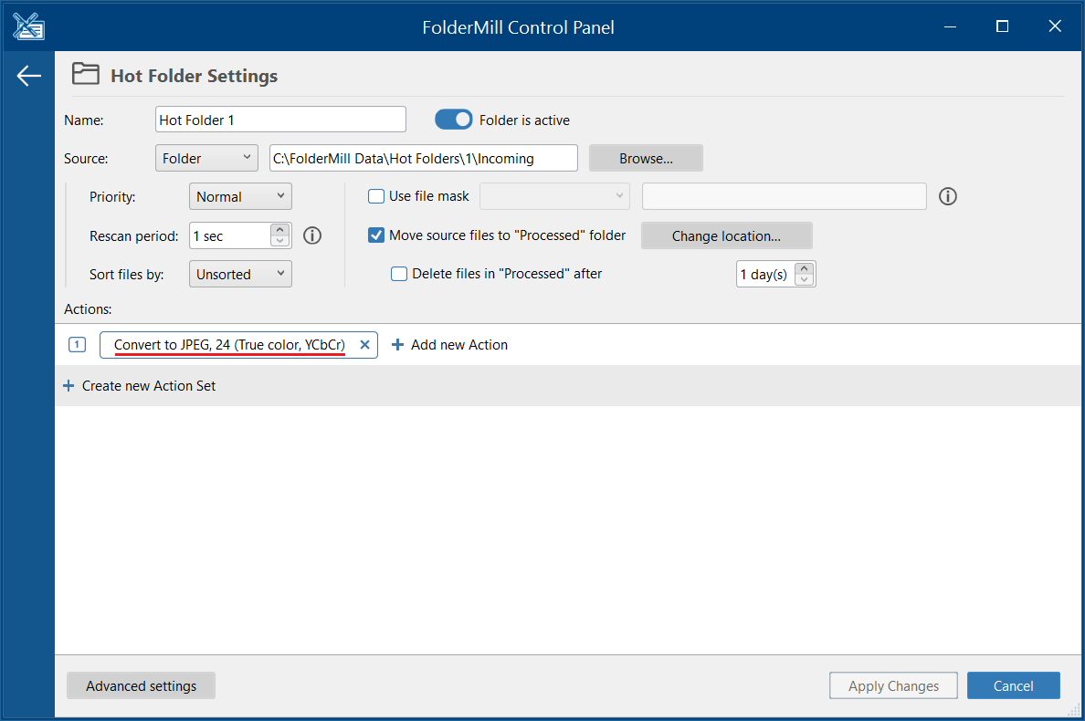 FolderMill can watch a hot folder for new files and automatically convert them to the desired format, including JPEG, PDF, XPS, and more. To set up the conversion process, follow these steps: