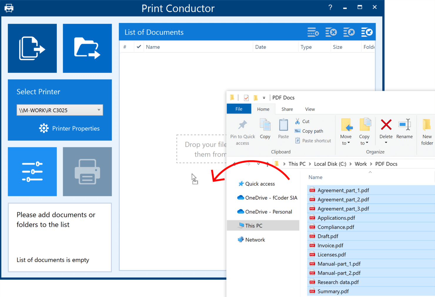 Print Conductor allows you to seamlessly print multiple PDF documents without the need to open each file. You can print any number of PDF files and other types of files in batch mode.