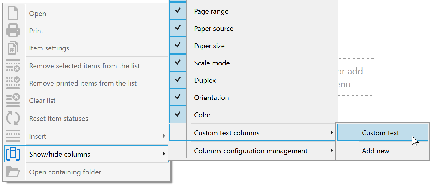 To view the Custom text, Custom text 1, Custom text 2, etc. columns in the Print Conductor interface: