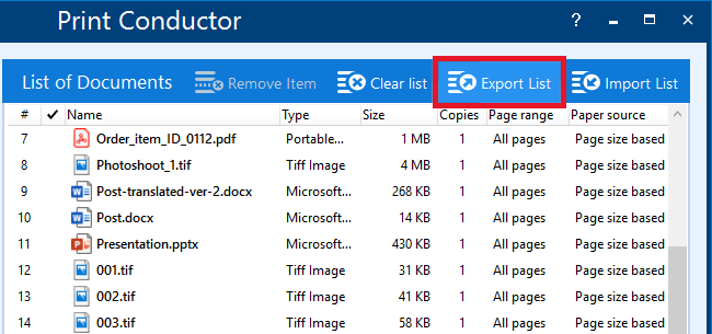 Then you can simply import this TXT file to Print Conductor using the Import List button.