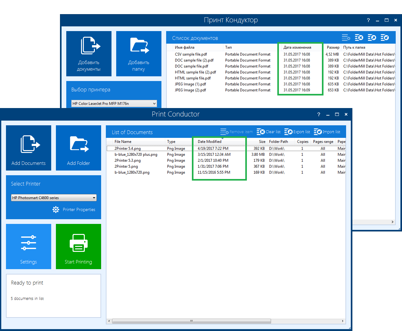In the new version of Print Conductor we synchronized date and time display format for “Date Modified” column with your system settings. Now it is in line with the local date and time format which is set in your Windows user account.