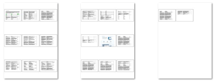 Let's assume you've added a few one-page documents to the List of Documents and set the 4 x 4 multiple pages per sheet mode configuration to start printing. By default, you'll end up with four paper sheets, each with a small print of a document in the top left corner. This may not be what you had intended.