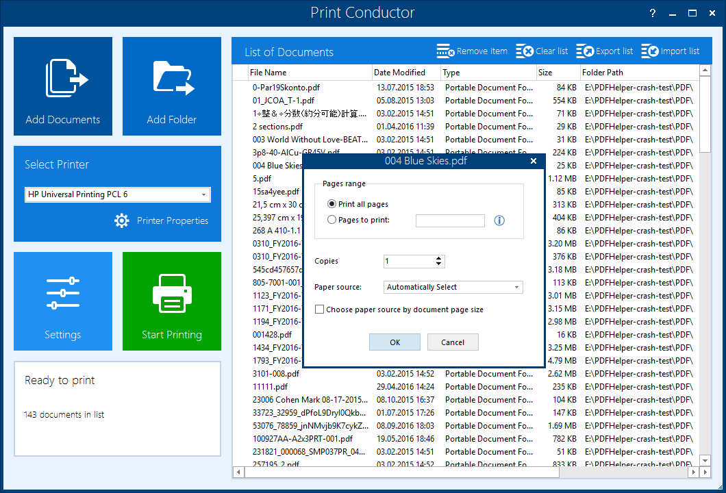 Print Conductor minimizes your efforts: you will not need to open the document, start a print job for it, proceed to the next document, click ‘print’ again and so on. Instead, you just drag and drop the files to Print Conductor main window and print them all.