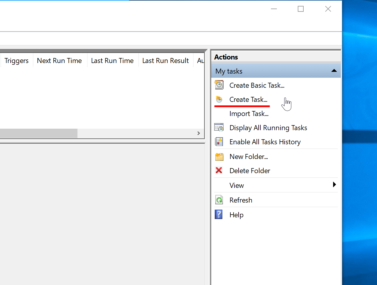 Click the Create Task… button in the left panel. We would first recommend creating a new folder for your own tasks.