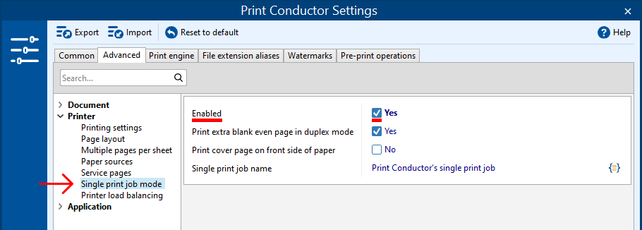 - Enable Single Print Job mode so that all files are combined into one multipage PDF;