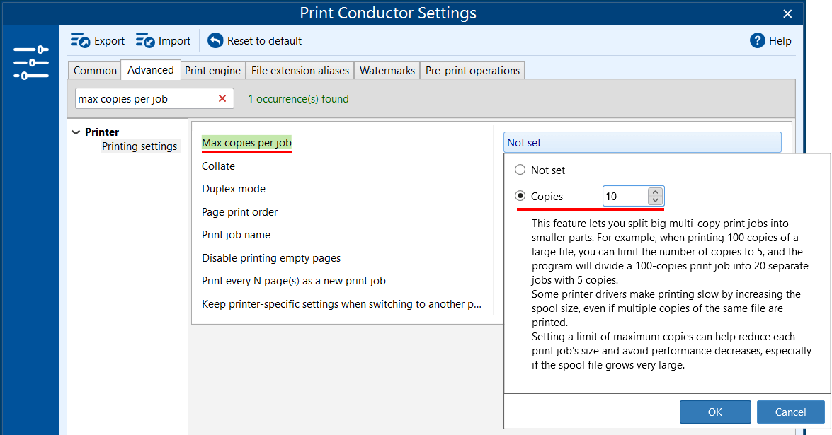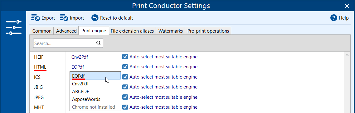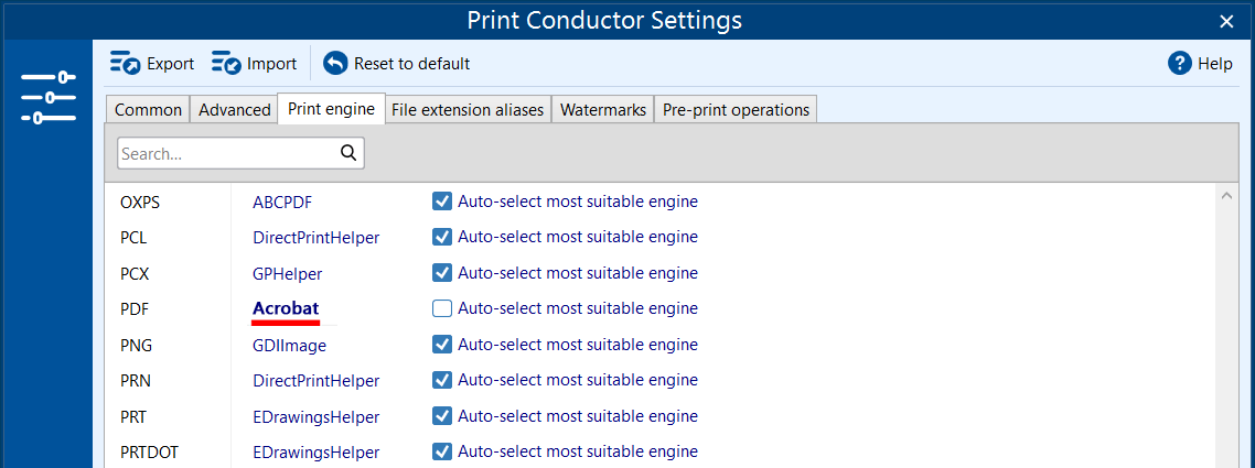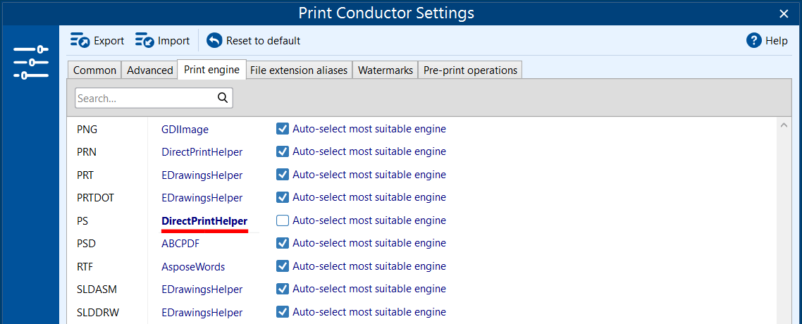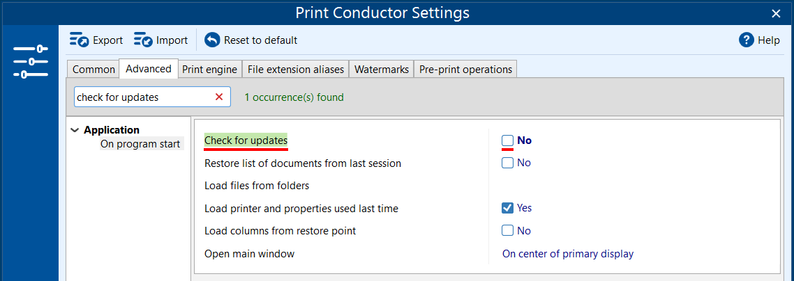 - Open Print Conductor Settings (Print Conductor → Settings);