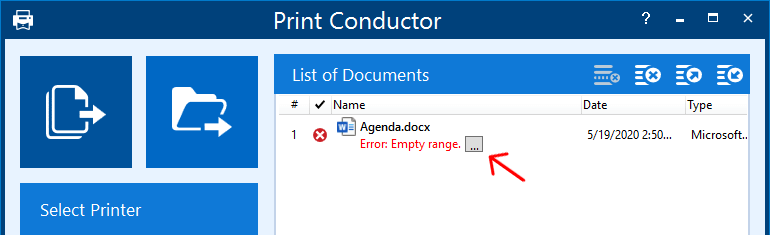 If you see "Error: Empty range" indicated in the interface, it is most likely that page range was set incorrectly – the program is trying to print pages that are not present in imported files.