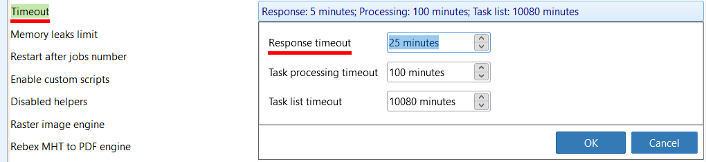 - In the Task processor section, locate the Timeout parameter and open its drop-down menu;