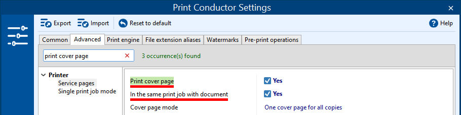 If you want to print only cover pages or report pages without the documents – it is also possible. Use the Print service pages only option: