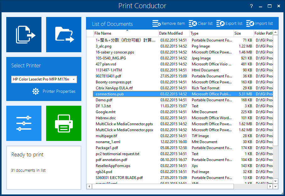 - Quick preview of recently saved Print Conductor Settings file (.INI) when using the Import button